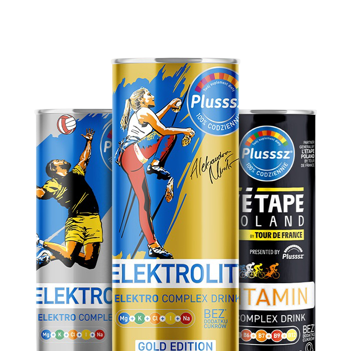 Suplementy diety Plusssz są dostępne w formie tabletek musujących, napojów w puszkach oraz w postaci shotów witaminowych.