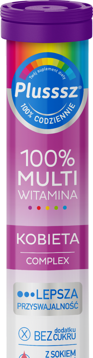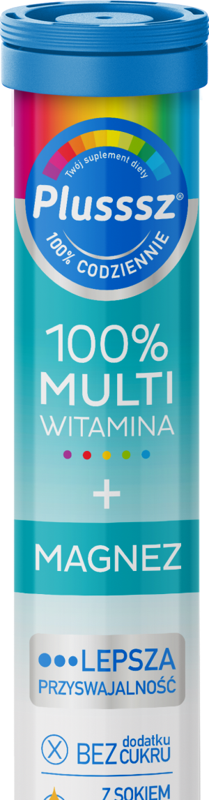 Plusssz 100% Multivitamin + Minerals is a specialist preparation containing a complex of 10 most important vitamins in quantities providing 100% of the daily Reference Intake Values for adults in 1 tablet. In addition, it contains essential minerals for the body such as: magnesium, zinc, selenium, calcium and copper.